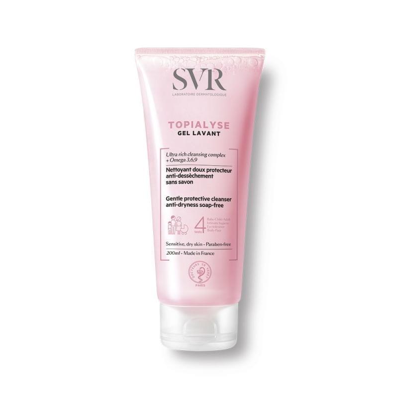 El SVR Topialyse Gel Lavant 200 ml es un gel limpiador suave ideal para pieles sensibles y secas, que limpia sin resecar, hidrata y alivia molestias como la tirantez y picazón. Para toda la familia